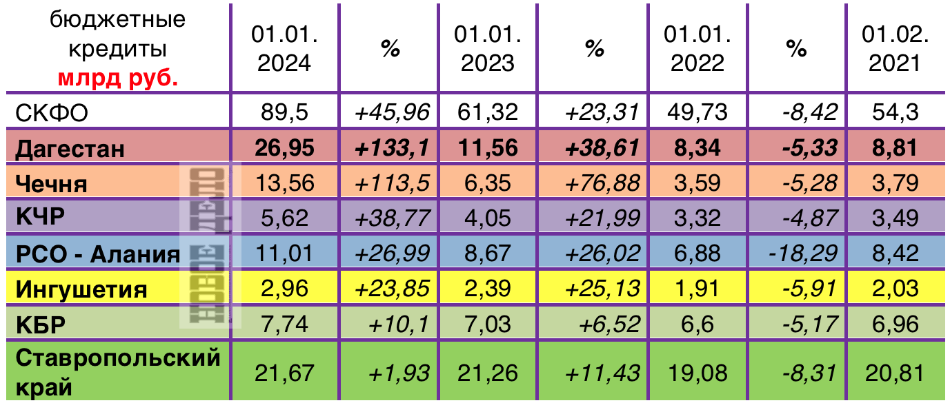 «НД» проанализировала данные Минфина за предшествующие периоды. В 2021 году все регионы СКФО уменьшили свои бюджетные долги, но дальше шёл только рост.