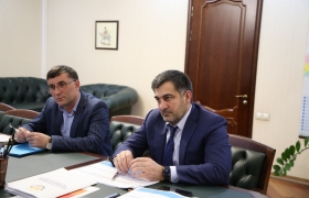 Гаджи Султанов и Магомед Ахматилов обсудили вопросы обеспечения проекта необходимыми мощностями инженерной инфраструктуры (электроснабжение, газоснабжение, водоснабжение, водоотведение, ливневые очистные сооружения), варианты финансирования работ по их строительству, пролонгации соглашения об осуществлении деятельности на ТОСЭР «Каспийск», ожидаемые сроки одобрения заявки в АО «КАВКАЗ.РФ» и др.