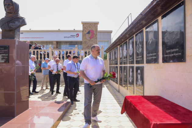 Затем глава Дагестана принял участие в открытии мемориальной плиты в память об участнике СВО Султане Раджабове в Сергокале. Султан Раджабов был сотрудником МФЦ, но в 2022 году решил сменить офисный пиджак на военную форму и отправился защищать рубежи нашей Родины. В феврале этого года Султан погиб, выполняя боевые задачи. Мемориальная доска в его честь установлена на здании МФЦ в Махачкале, а теперь она есть и на здании многофункционального центра в Сергокалинском районе.