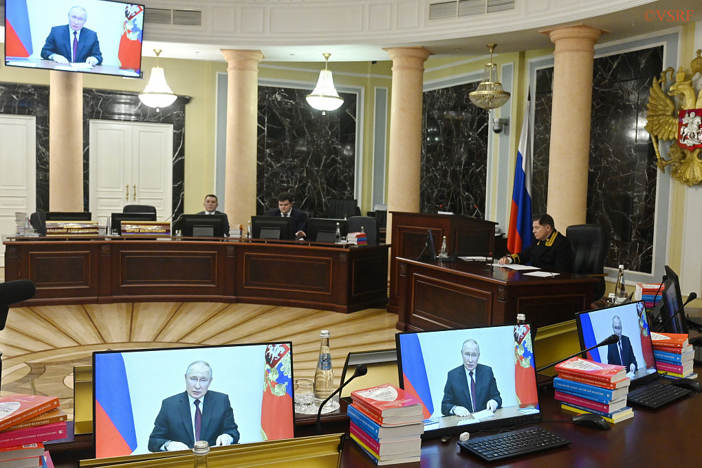 Открыл мероприятие Президент Российской Федерации Владимир Владимирович Путин. Глава государства высоко оценил работу Верховного Суда России и всего судейского корпуса.
