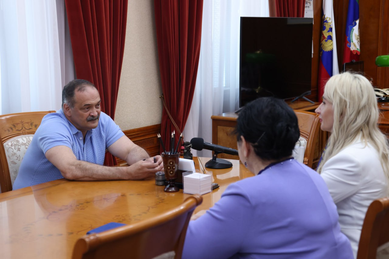 МАХАЧКАЛА, 22 июля – РИА «Дагестан». Глава республики Сергей Меликов встретился с автором проекта «Жёны героев», членом Общественной палаты России Екатериной Колотовкиной.