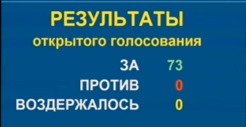 Депутат приняли закон в первом чтении единогласно: 73 «за»