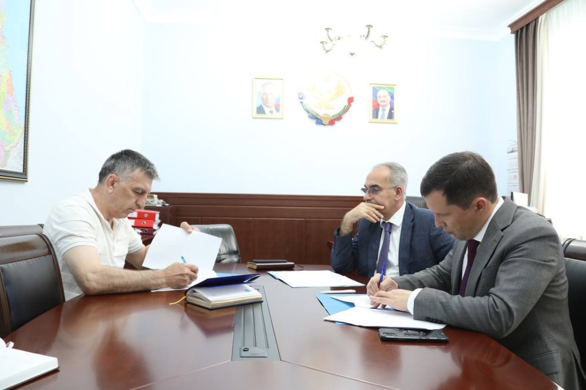 Свои подписи на документе в присутствии вице-премьера Наримана Абдулмуталибова поставили врио министра природных ресурсов и экологии РД Абдула Умаханов и руководитель УФНС России по РД Айдар Байрамов .