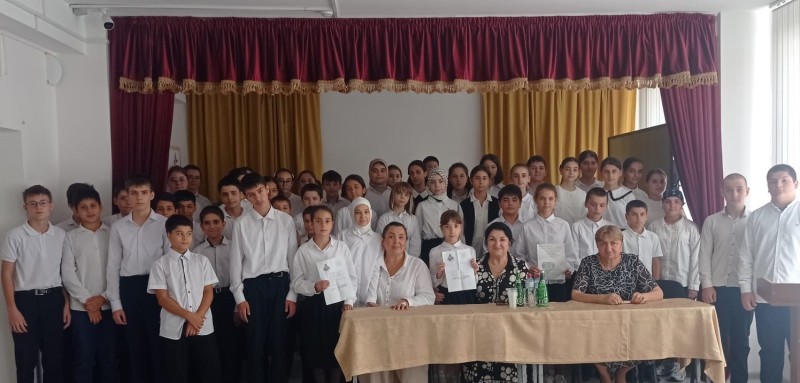 На встречу к школьникам пришли гости — начальник отдела Хасайбат Валиева и Председатель Союза женщин Дагестана Интизар Мамутаева.