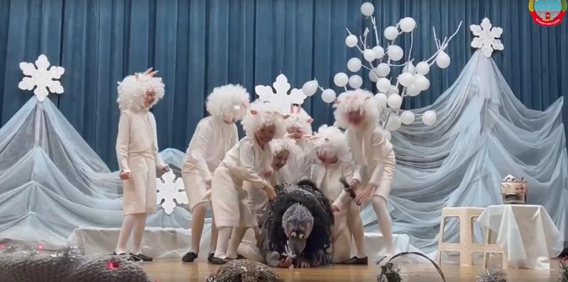 Малыши с удовольствием смотрели, как юные артисты играли для них на ложках, исполняли танец снежинок и, смеясь, кидали снежки в вредного лешего и капризную Бабу Ягу. Каждое мгновение этого праздника было наполнено смехом и задором.