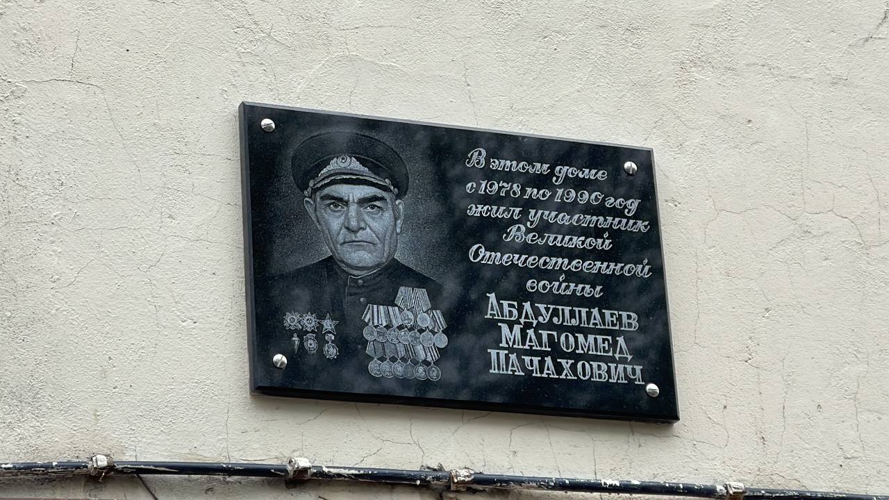 В Махачкале состоялось торжественное открытие мемориальной плиты участнику Великой Отечественной войны Абдуллаеву Магомеду Пачаховичу. Памятная табличка установлена на на стене дома №160 по улице М.Гаджиева, где жил ветеран.