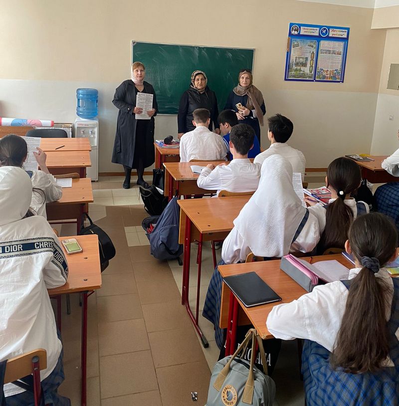 02.05.2023 и 03.05.2023 года в рамках профориентационной работы, мастера п/о Профессионального колледжа ДГУНХ Абдурахманова Асият Ибрагимовна, Ахдуханова Илайшат Магомедовна, Газие