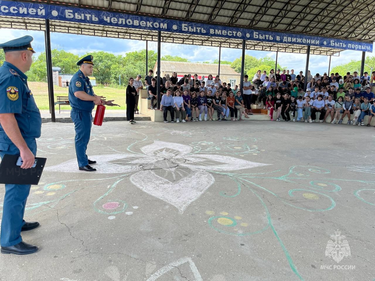 Сотрудники МЧС провели учебную тренировку и обучающую беседу с ребятами. Участники тренировки показали умелые действия, учились организовано эвакуироваться из помещений на безопасное расстояние от корпуса, как это и должно быть в случае возгорания.