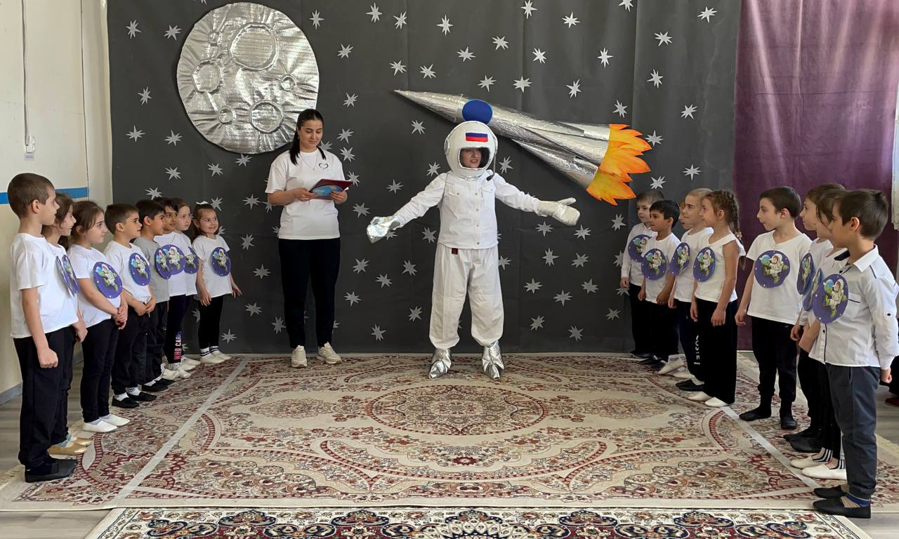 Открывая мероприятие, инструктор по физической культуре Зухра Магомедова рассказала детям о первом космонавте Юрии Гагарине.