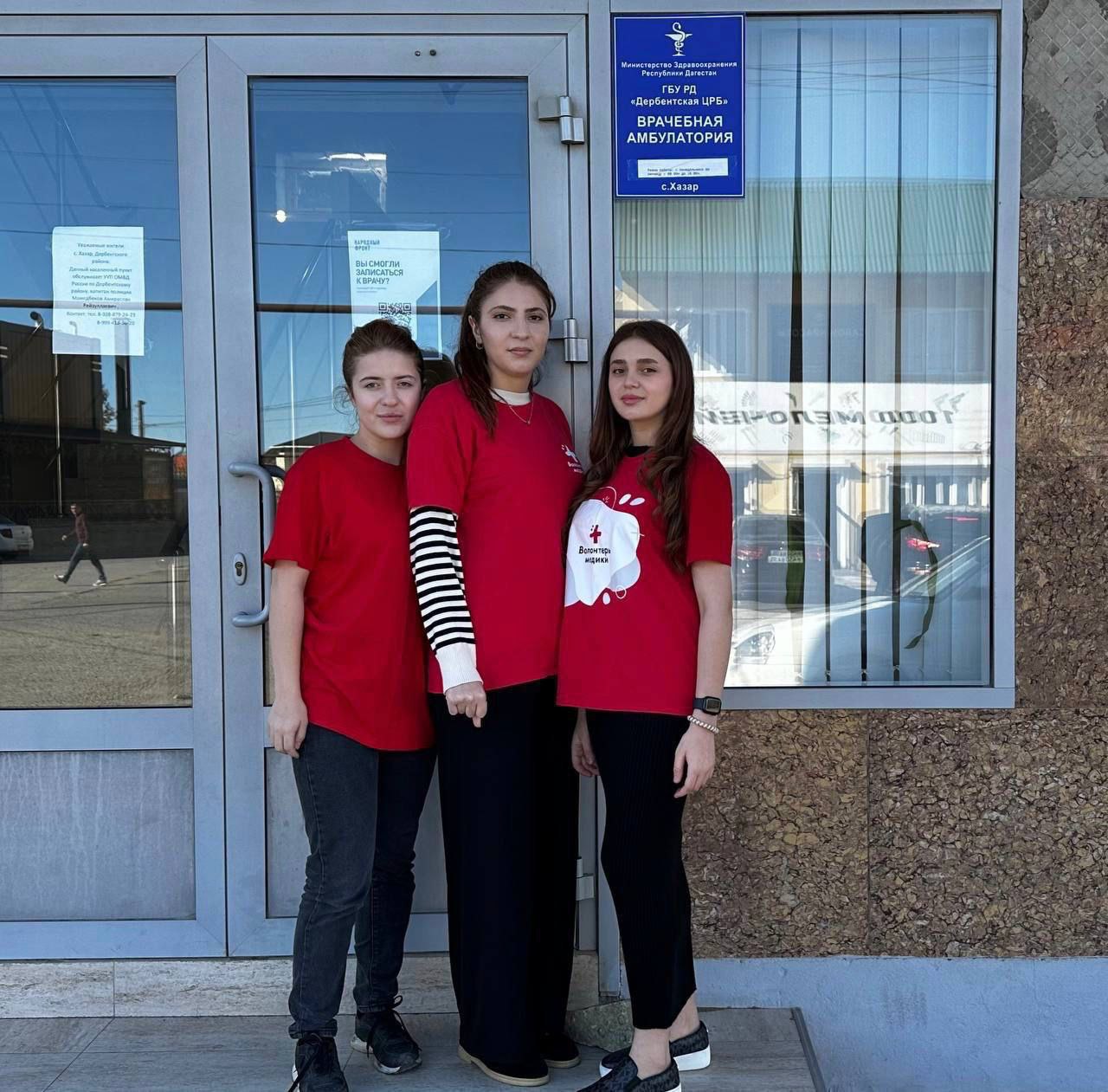 12 октября волонтёры-медики Дербентского медицинского колледжа им. Г.А.Илизарова в рамках акции «Добро в село» посетили врачебную амбулаторию с. Хазар. Волонтёры помогли принять пациентов в стоматологическом отделении, измерили АД, помогли в регистратуре.