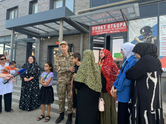 Нашего добровольца провожало всё его большое семейство. Среди провожающих выделялась дочка Закаева, которая с гордостью и одновременно с тревогой смотрела на своего отца. Она отмечает, что переубедить его было невозможно.
