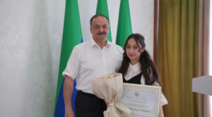 -13 июля 2023 года я получила сертификат от главы Республики на 100 тысяч рублей. Встреча с Сергеем Алимовичем состоялась в Доме дружбы, проходила она официально, все собравшиеся слушали речь главы за общим столом. Затем проходила церемония награждения участниĸов олимпиад и учеников, набравших 100 баллов на ЕГЭ. Я очень рада, что в Дагестане поощряются достижения школьников, такие презенты мотивируют покорять новые высоты.