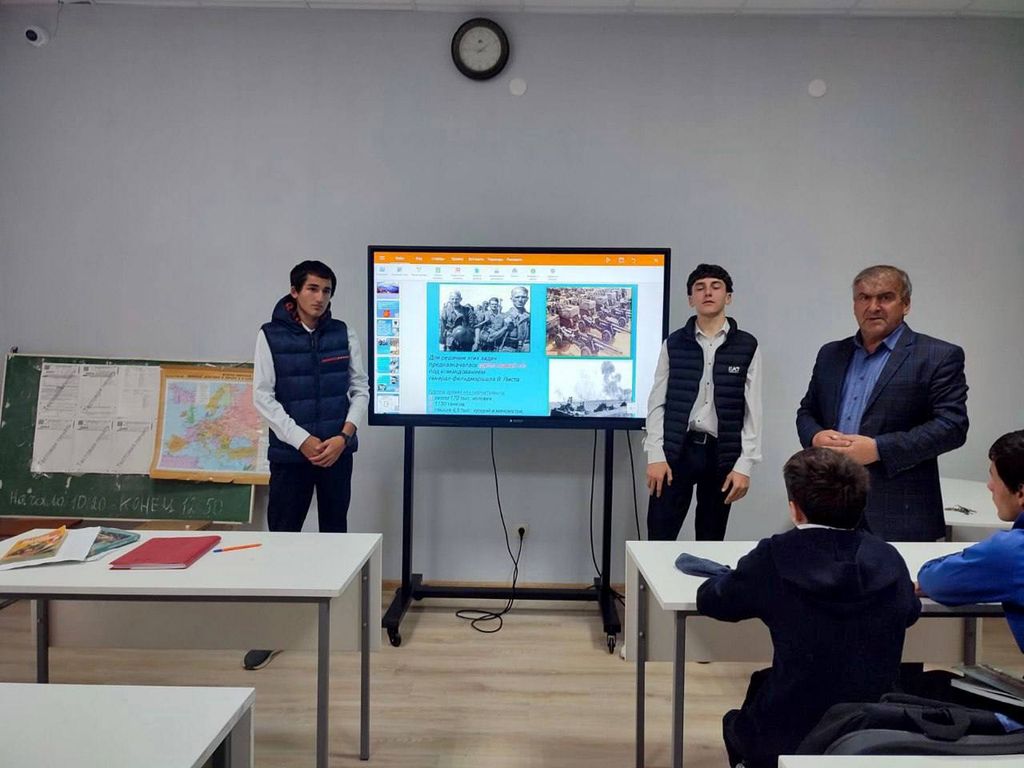 Учителя истории для учащихся 5-11 классов провели уроки мужества, на которых школьники смогли ознакомиться с историей битвы за Кавказ — одной из самых длительных и кровопролитных сражений Великой Отечественной войны.