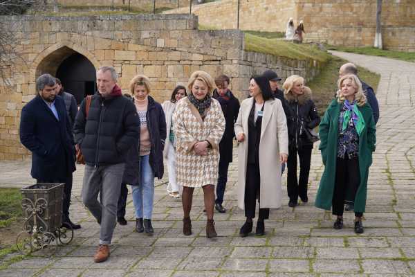 Высоким гостям организовали экскурсию по цитаделю "Нарын-Кала", Джума-мечети, Лезгинскому музыкально-драматическому театру им. С. Стальского и Дербентскому коньячному комбинату. В ходе экскурсии делегацию сопровождали мэр Дербента Рустамбек Пирмагомедов и руководитель минкульта РД Зарему Бутаева.