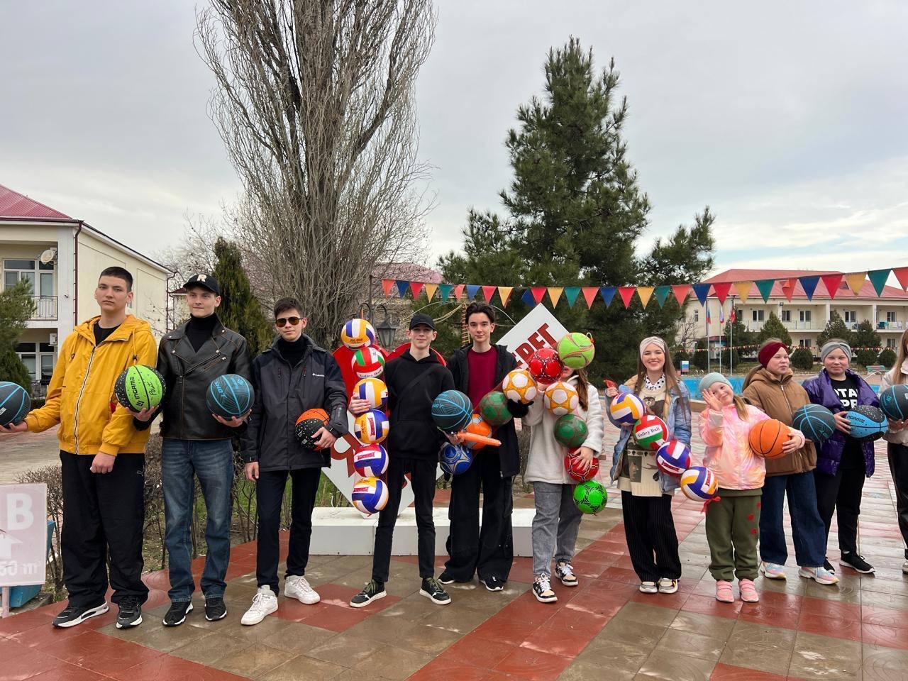 Так, ребятам привезли спортивный инвентарь, в частости баскетбольные и волейбольные мячи, а также некоторые предметы быта.