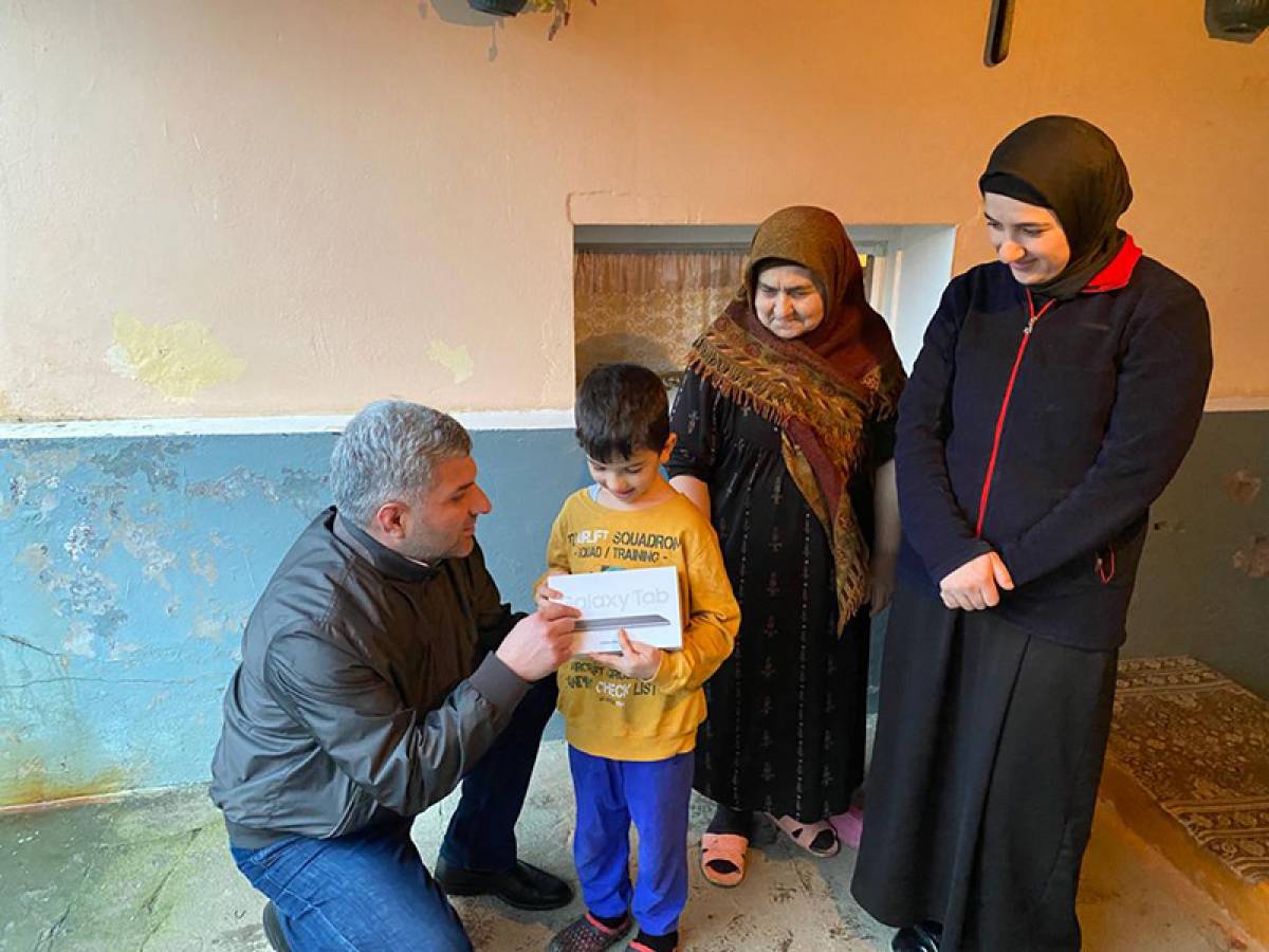 Парламентарий поздравил сына погибшего с Днем рождения и вручил ему в подарок планшет.