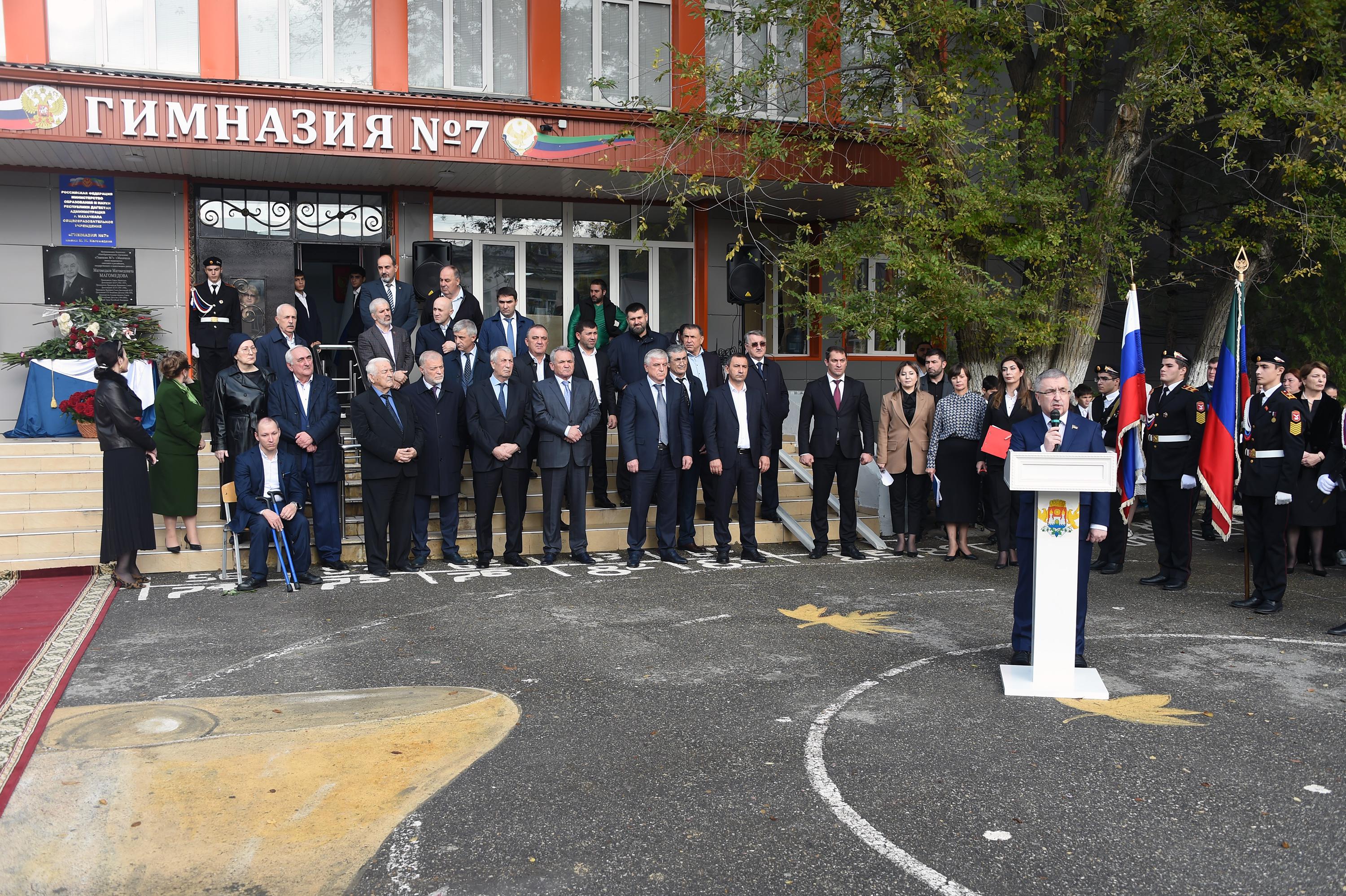 Сегодня, 25 октября, Первый заместитель Председателя Народного Собрания РД Юрий Левицкий и депутаты республиканского парламента приняли участие в торжественном мероприятии, посвященном присвоению гимназии №7 города Махачкалы имени выдающегося советского и российского государственного и политического деятеля, Почетного Председателя Государственного Совета Республики Дагестан, Героя Труда Российской Федерации Магомедали Магомедовича Магомедова и открытию мемориальной доски в его честь.