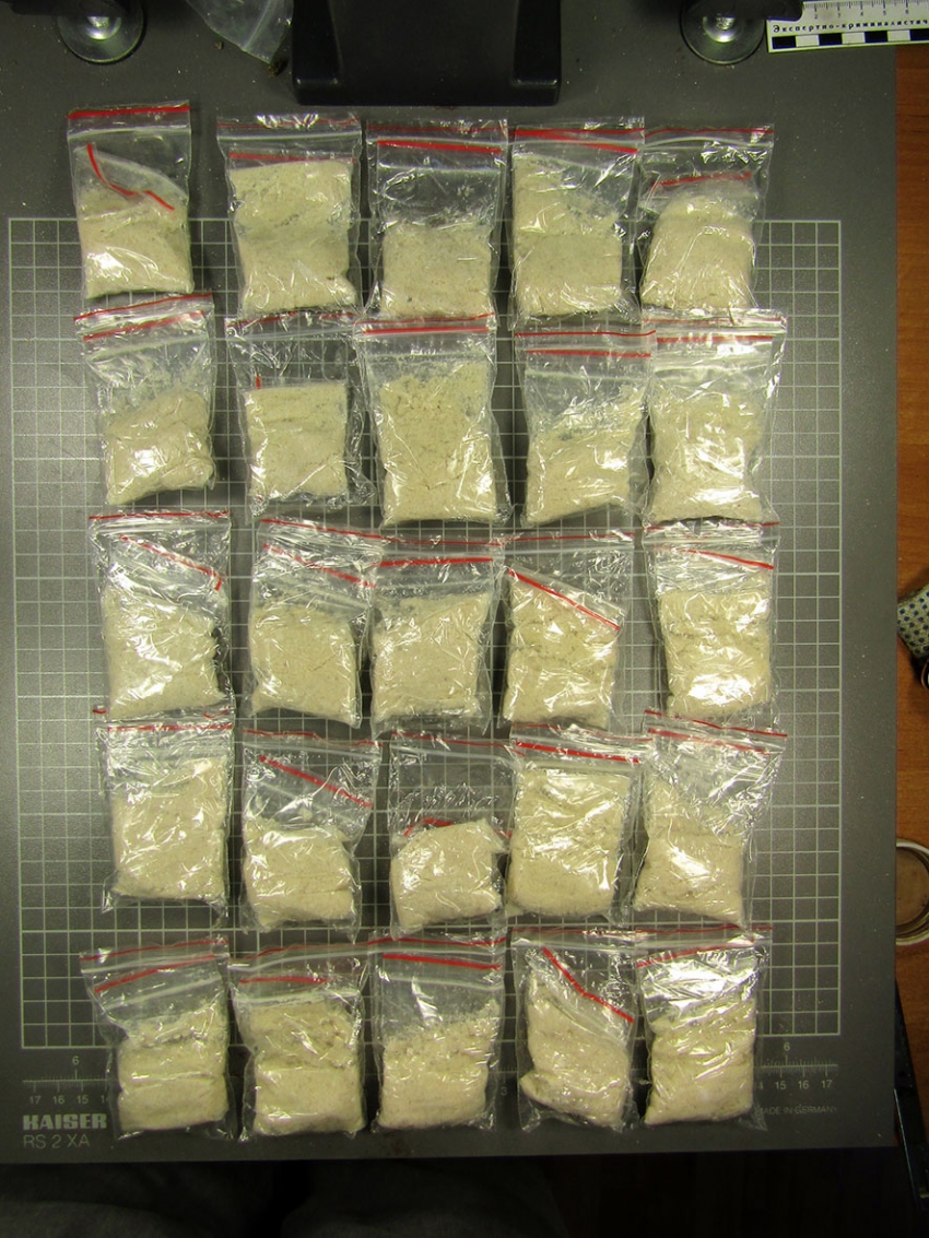 При проведении личного досмотра полицейские обнаружили и изъяли у граждан 45 полимерных свертков с порошкообразным веществом. Проведенным исследованием установлено, что содержимое является наркотическим средством – мефедроном, общей массой более 500 граммов.