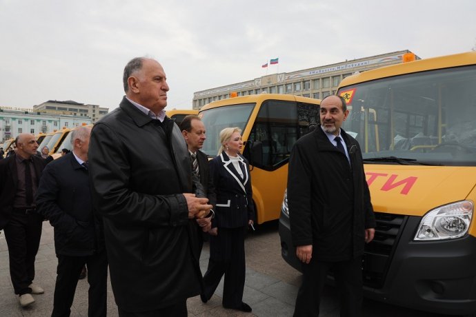 Председатель Правительства Республики Дагестан Абдулмуслим Абдулмуслимов принял участие в торжественной церемонии передачи 23 новых транспортных средств образовательным учреждениям республики.