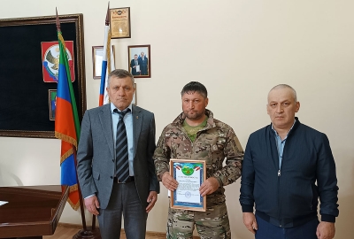 В заключении Ахмед Гамзатов вручил участнику СВО Махмудову благодарственное письмо.