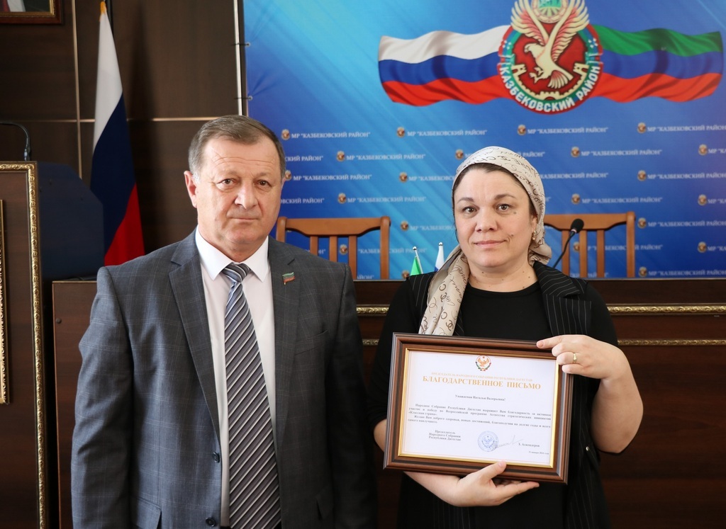 Благодарностью Народного Собрания РД за активное участие и победу во Всероссийской программе Агентства стратегических инициатив «Классная страна» отмечены директор Дылымской гимназии Зульфия Темирбулатова и член «Клуба учитель года», руководитель МКУ «Единый информационный центр» Наталья Качалаева.