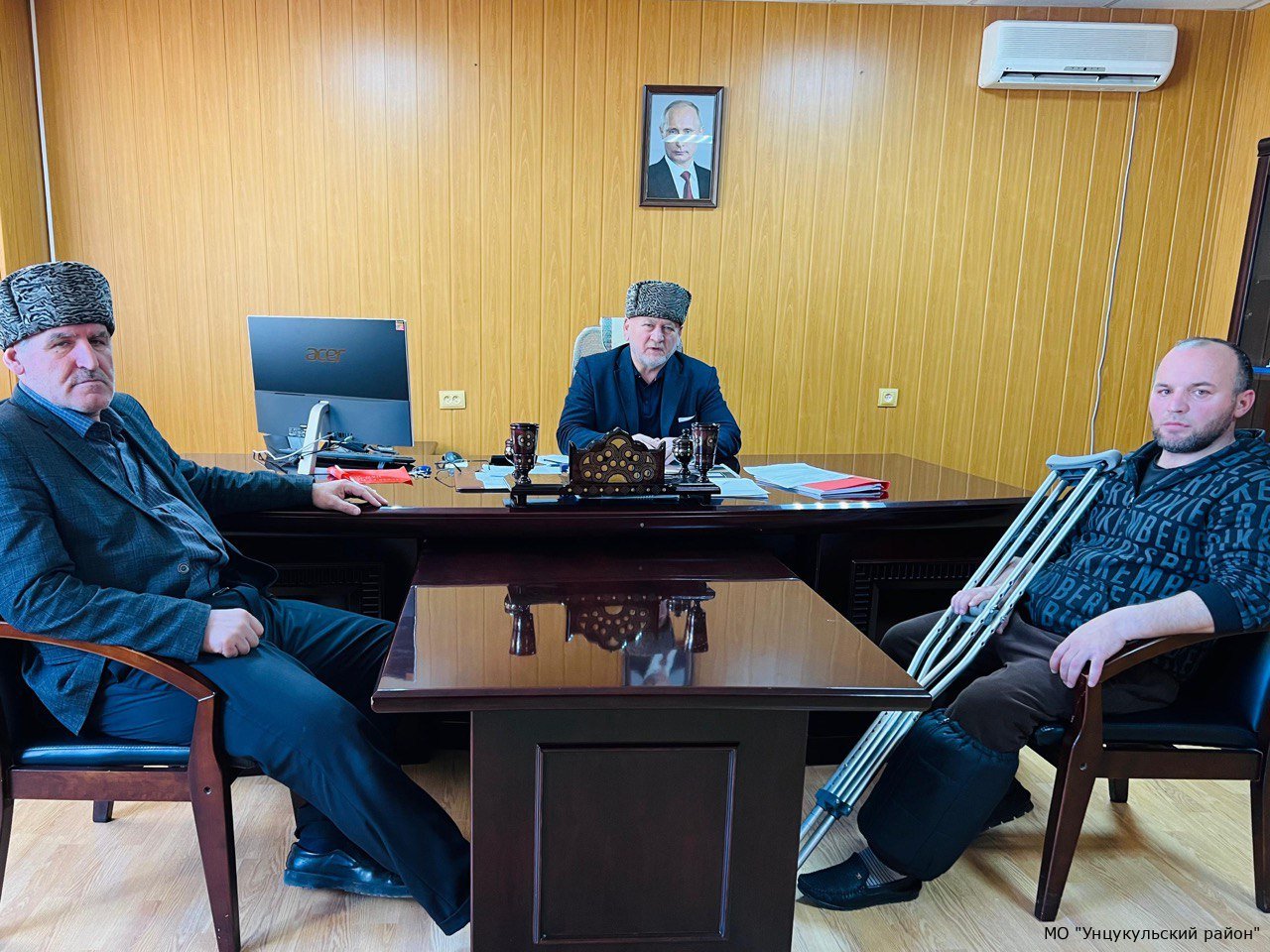 Глава Унцукульского района Иса Нурмагомедов встретился с участником СВО Казимом Шихабудиновым