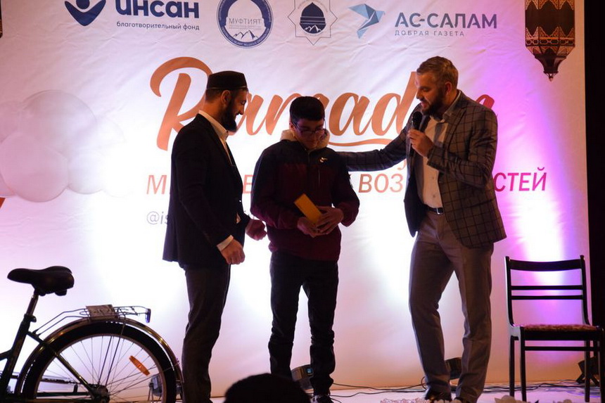 Между проповедями о достоинствах месяца Рамадан разыгрывали призы. Прочли также Азан, призывающий на обеденный намаз.