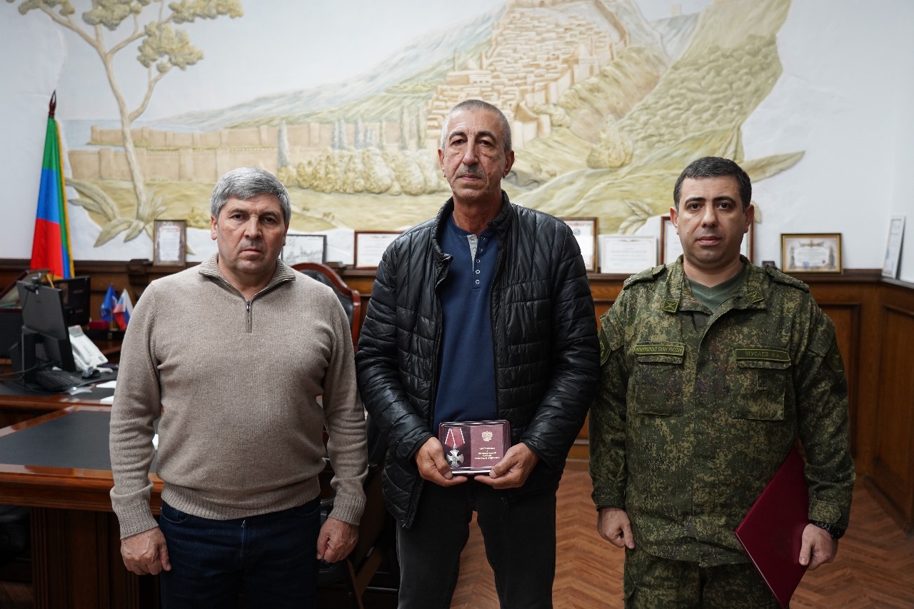 Сегодня, 2 декабря, в администрации города Дербента мэр Ахмед Кулиев вручил орден Мужества посмертно отцу Дмитрия Мусаева, который погиб при исполнении воинского долга во время специальной военной операции.