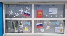 Педагоги и учащиеся, воспитатели и дошколята присоединились к Всероссийской акции «Окна России». Основная цель акции — проявление участниками гражданской позиции, патриотизма, любви к Родине. К участию в акции обучающиеся и воспитанники детских садов подошли творчески, оформляя окна теми символами, которые у них ассоциируются с Россией: рисунками, картинками, надписями. Самые юные жители района разрисовали окна флажками, цветами, шарами и рисунками. Отметим, что украшение окон - это не только интересно, увлекательно и красиво, это создаёт атмосферу одного из самых важных праздников в России. В этот день люди отдают дань уважения своей Родине, своей Отчизне.