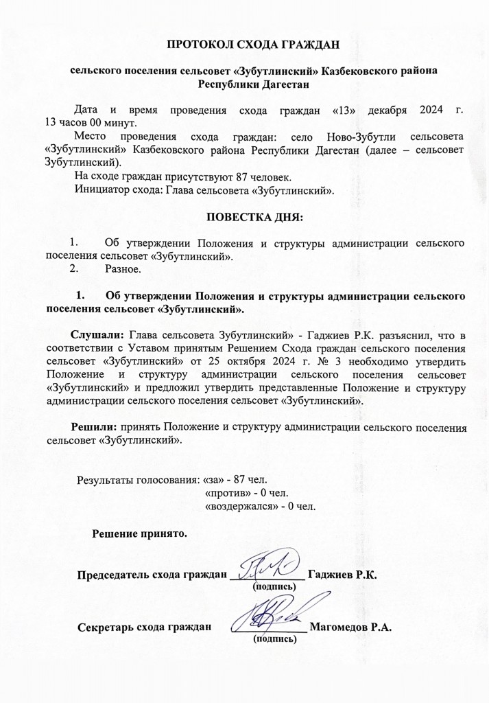 В заключение, жители Зубутлинского сельсовета выразили надежду, что их предложения будут услышаны и учтены при принятии решений, касающихся их жизни и благосостояния.