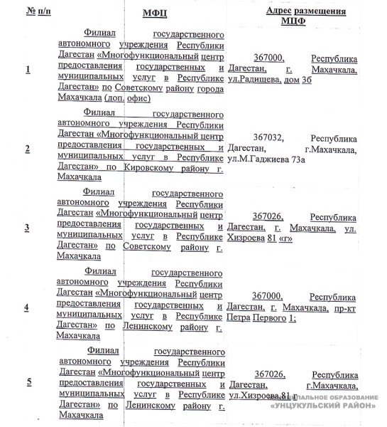 Перечень МФ1Д в которых организуется предоставление государственной услуги: