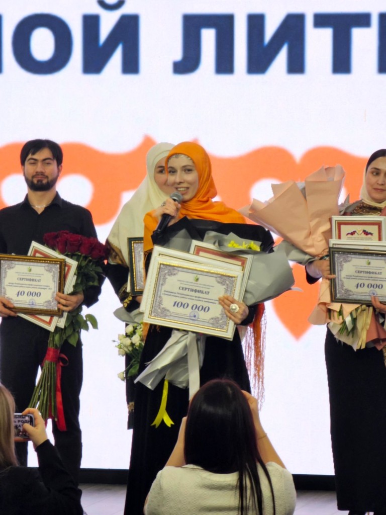 Патимат Магомедаминова получила грамоту и денежный сертификат за свой вклад в развитие и популяризацию родных языков.