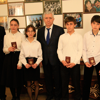Паспорта получили: Джамал Юсупов Унчкатлинская СОШ, Автондил Хизиев Хурхинкая СОШ, Назира Кичаева Щаринская СОШ, Зураб Чавтараев и Рабият Шахшаева Кумухская СОШ.