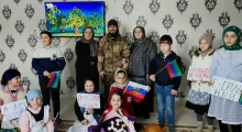 ‹ › Представители культуры села Нарыш Патимат Далгатова и Бика Джамалудинова организовали встречу школьников с приехавшим в отпуск участником спецоперации Тимуром Эсенбаевым.