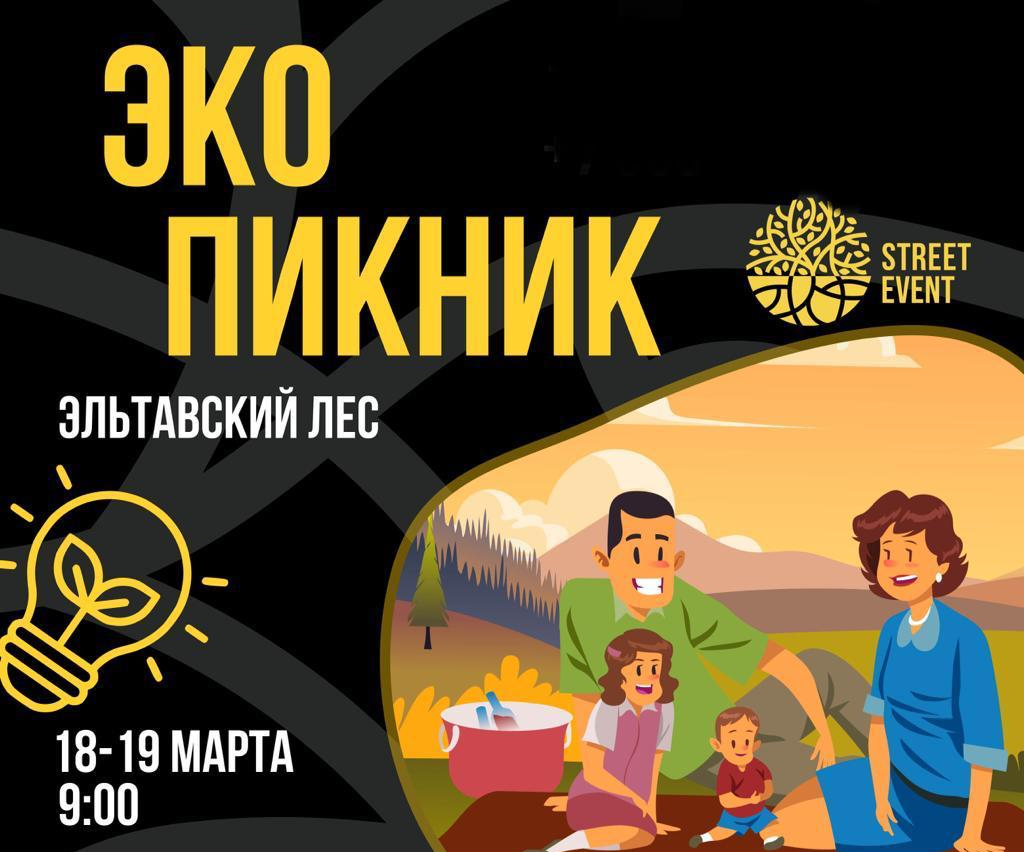 Мероприятие проходит в Эльтавском лесу. Участники проводят уборку и сортировку мусора в специальные сортировочные баки.