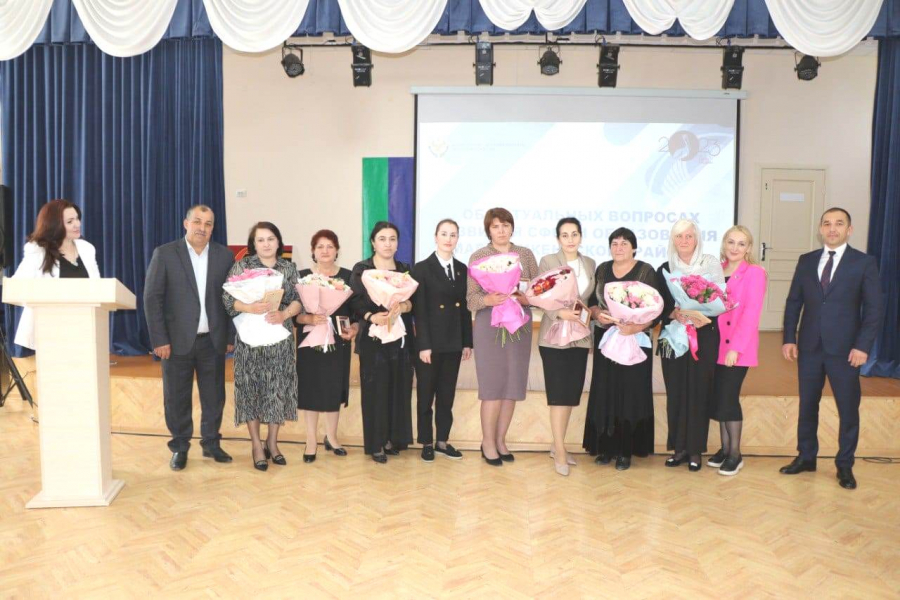 В рамках совещания по актуальным вопросам развития сферы образования Магарамкентского района первый замминистра обрнауки РД вручила региональные награды