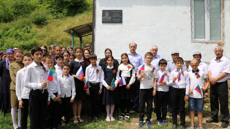 Затем глава Кайтагского района Алим Темирбулатов и глава сельского поселения Анвар Магомедов торжественно открыли мемориальную доску, посвященную Абдулкериму Мирзаеву, установленную на стене дома, в котором он жил со своей семьей.