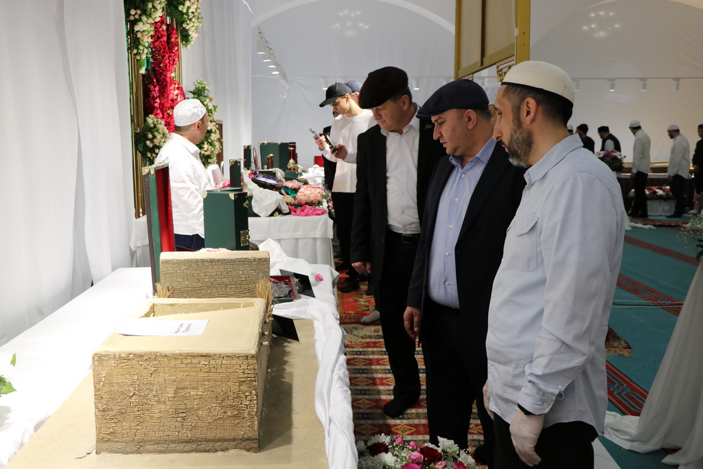 Под салават, прославляющий Посланника Аллагьа, пронесли по живому коридору долгожданные святыни — вещи, принадлежавшие пророку Мухаммаду (мир ему и благословение Аллагьа), его сподвижникам и его семье. Первую реликвию, волосы Посланника Аллагьа, из рук председателя Совета имамов Казбековского района Амирали Абакарова, главы района Гаджимурада Мусаева, заместителя Муфтия РД Ахмеда Магомедова приняли имам с.Дылым Шамиль Курбанов, первый заместитель главы администрации МР Ильяс Шабазов и председатель районного Собрания депутатов Гирисхан Гирисханов. Далее в приеме более 30 реликвий приняли участие ученые-богословы и студенты аспирантуры Муфтията РД, представители совета имамов Казбековского района, отдела МВД России по Казбековскому району, депутатского корпуса, молодежи Казбековского и Хасавюртовского районов, а также выдающиеся спортсмены Казбековского района, общественные деятели и аксакалы.
