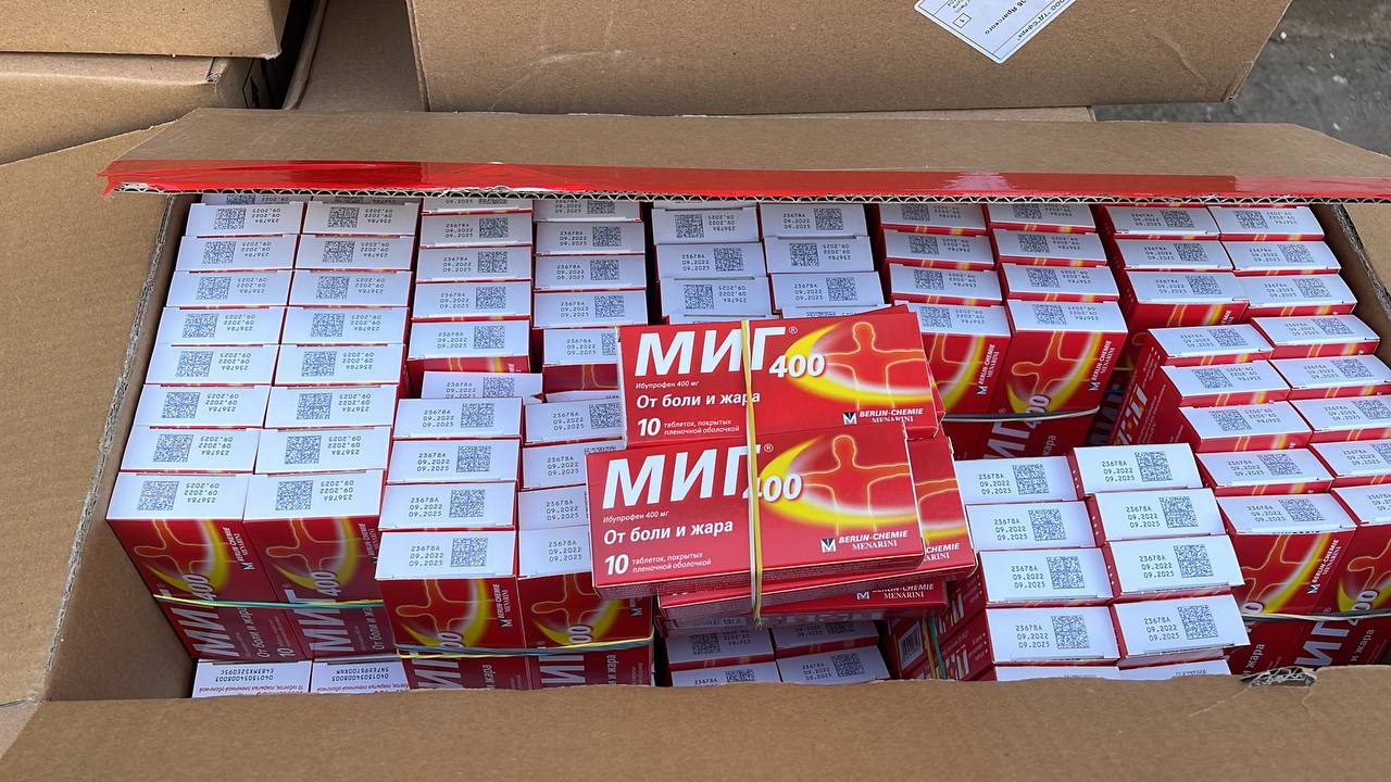Груз включает в себя средства личной гигиены, а также большую партию лекарственных препаратов первой необходимости.