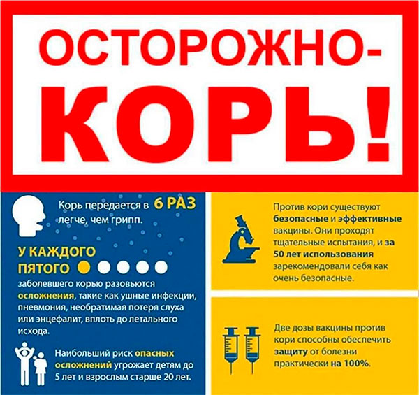 Позаботьтесь о своем здоровье, здоровье своих родных и близких проводите вакцинацию своевременно! Корь – это самая заразная инфекция в мире. Один больной человек может заразить примерно 12-18 людей вокруг себя, если они не привиты.