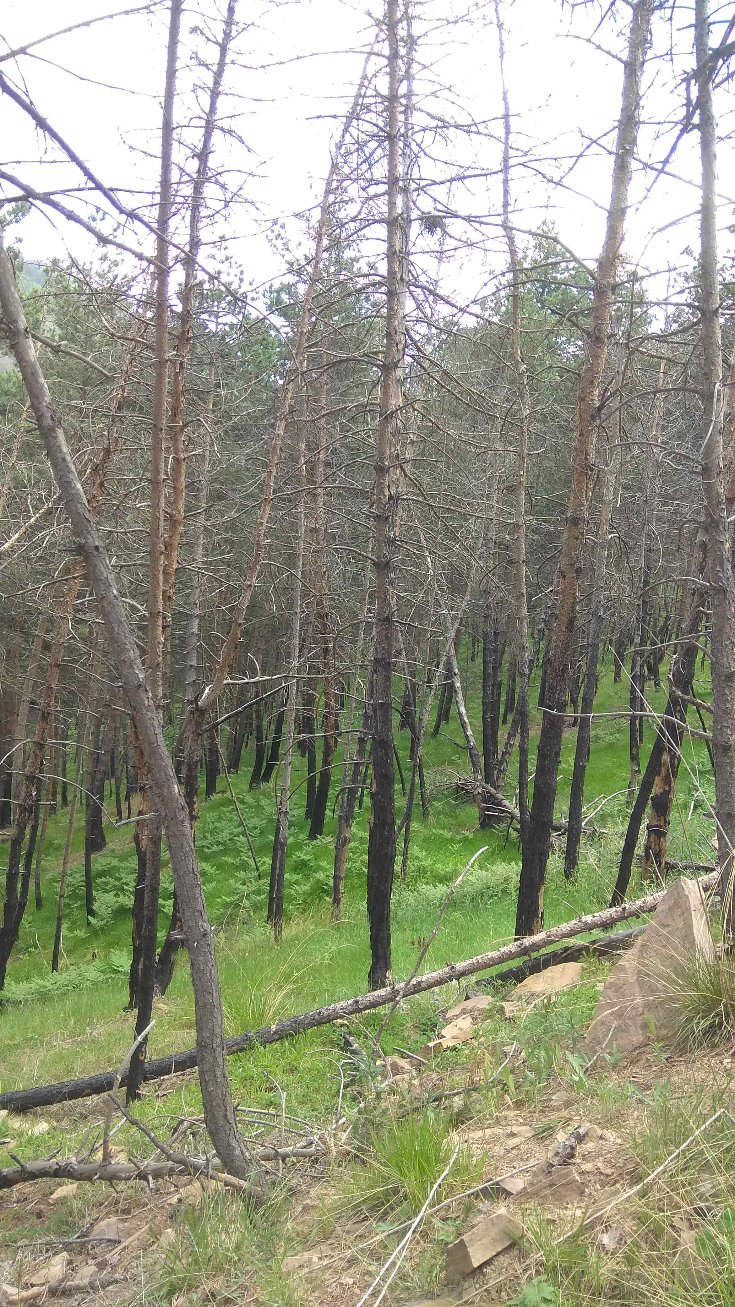 На территории Ботлихского и Кайтагского лесничеств основные обследования проведены в насаждениях, поврежденных пожарами различной степени интенсивности и давности. На старых пожарах происходят процессы естественного заращивания - отмечен подрост высотой до 1,5 метров. Практически повсеместно в обследованных выделах встречаются ветровальные и буреломные деревья, которые погибли от воздействия огня. В целом, санитарное состояние большинства исследованных насаждений удовлетворительное. На обследованных участках рекомендовано проведение лесопатологического обследования инструментальным способом и уборка неликвидной древесины.