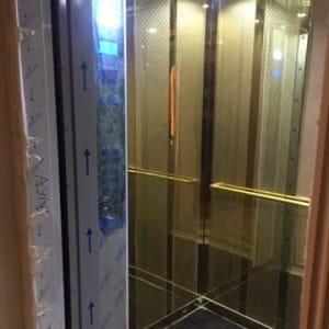 Лифт в доме грузопассажирский вмещает себя 6-8 человек .